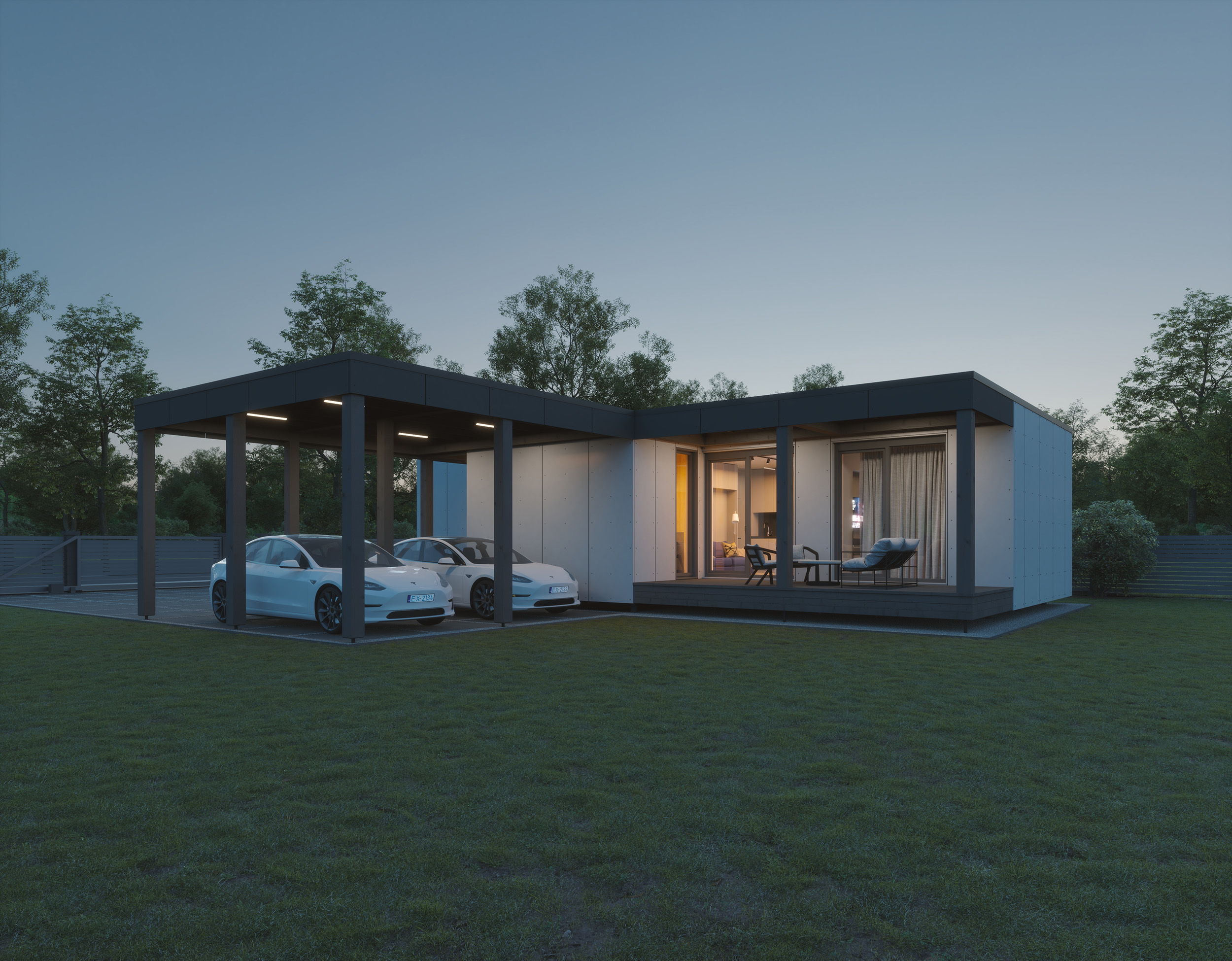 ZE HOMES are fully ready, furnished and equipped homes. ZE HOME basic set (price) includes solar panels, all internal utilities with equipment (including heat pump), external and internal finishes, sockets, switches, lighting, bathroom furniture and equipment, kitchen furniture and appliances and also cabinet furniture in all other rooms